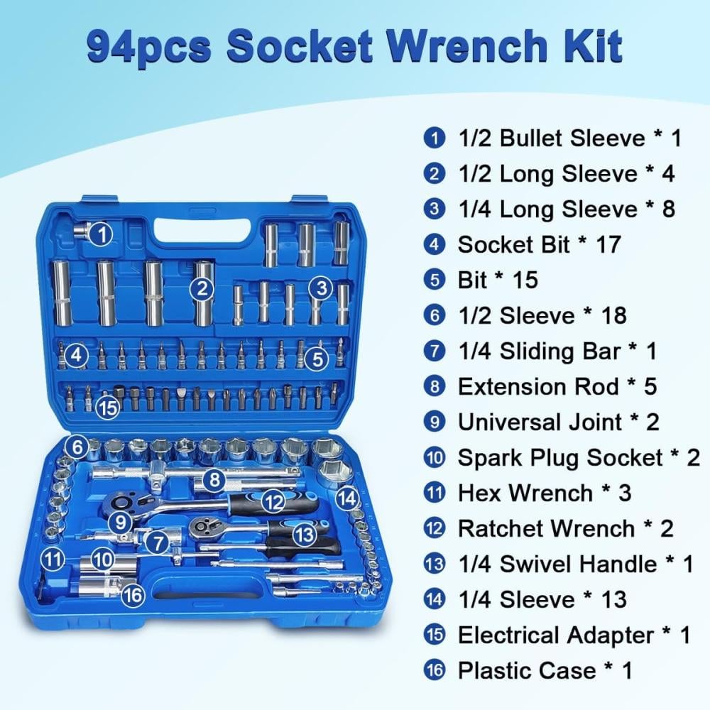 - طقم عدة متكامل 94 قطعه بثلاث مقاسات ( 1/2 - 1/4 )